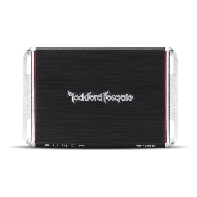 The Rockford Fosgate PBR400X4D is a full range 4 channel amplifier designed for stereo front and rear systems that need little space to work. The Boosted Rail Technology is a high efficient design that generates 400 watts of power. The Boosted Rail Technology has a variable hi-level DC offset turn-on circuit for easy installation into any OEM system.